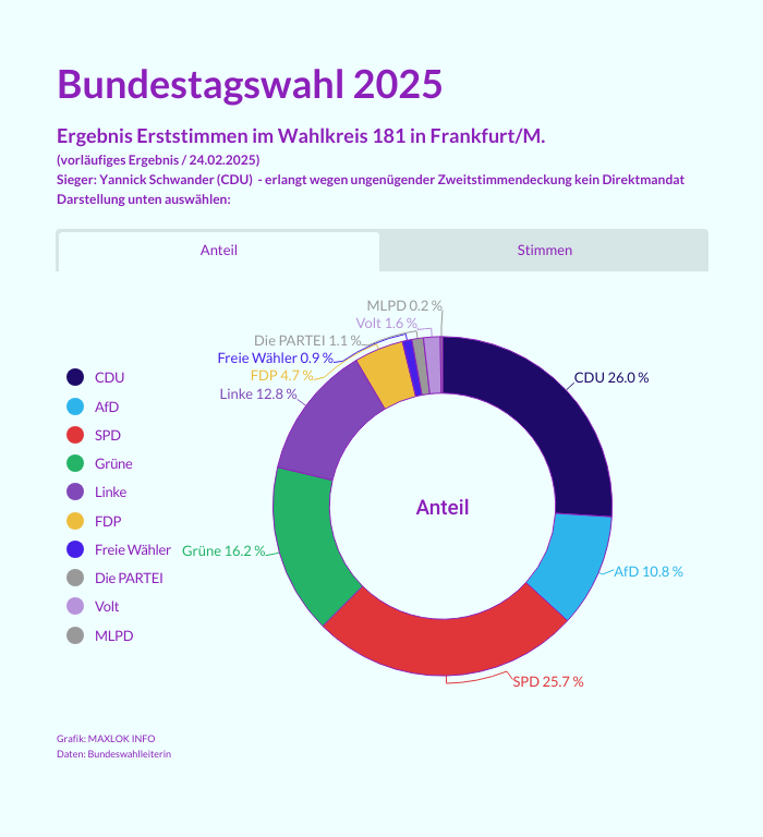Das Wahlergebnis der Bundestagswahl 2025 im Wahlkreis 181 - Frankfurt am Main
