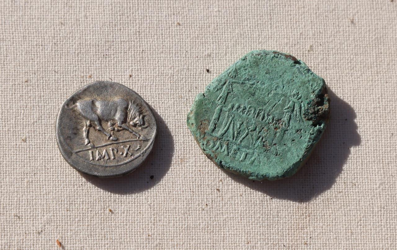 Münzen aus Lugdunum gehören zu den Ausgrabungsstücken. Lugdunum war der antike lateinische Name des heutigen Lyon. Mit Blick auf die Städtepartnerschaft zwischen Frankfurt und Lyon also ein ganz besonderer Fund. Foto: Stadt Frankfurt / Maik Reuß