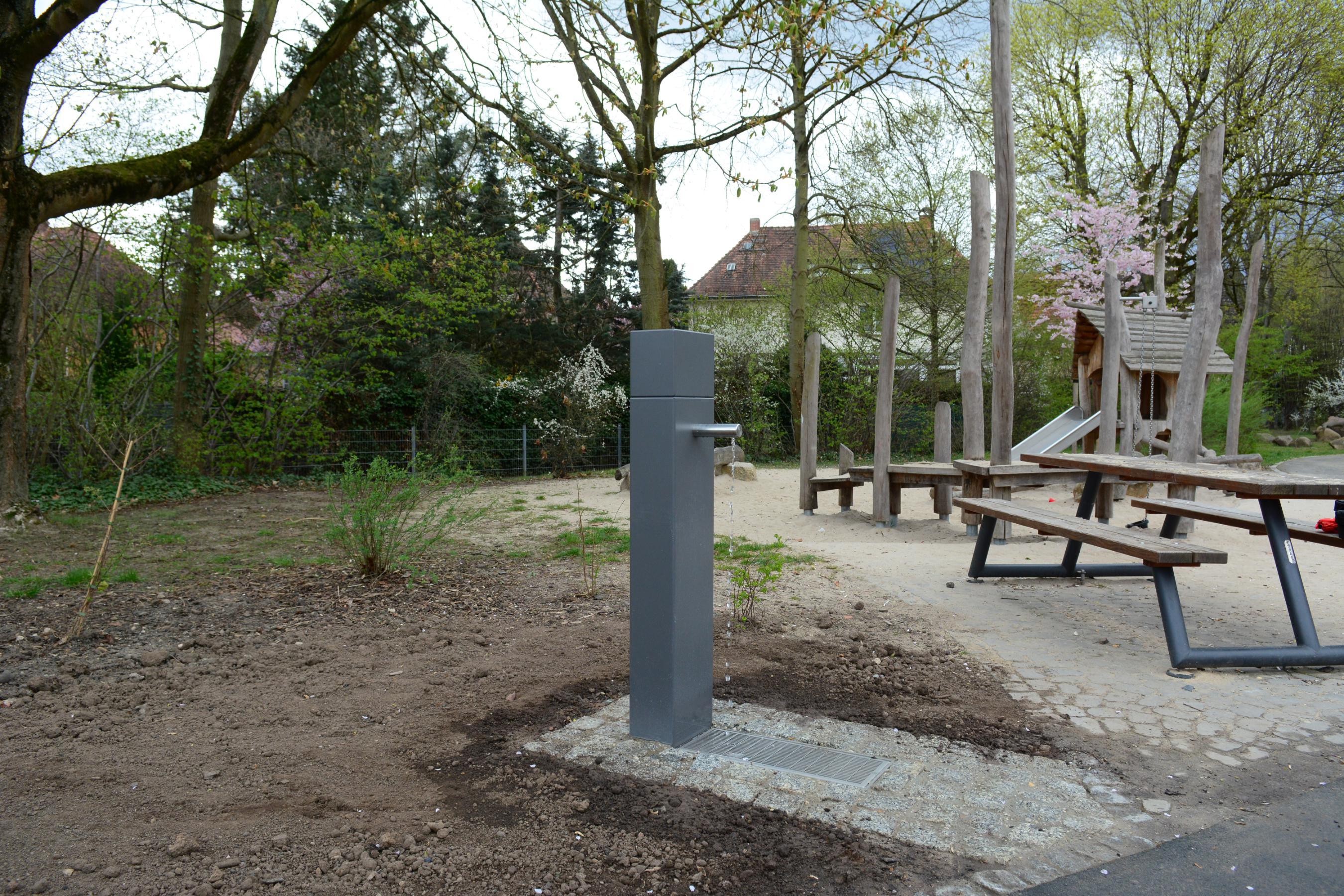 FECHENHEIM - Das Spiel- und Freizeitgelände an der Konstanzer. Straße in Fechenheim ist weiter aufgewertet worden. Der Spielplatz verfügt nunmehr über eine neue öffentliche Toilette und einen Trinkbrunnen.